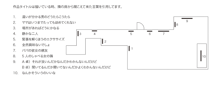 すなわち、喫茶店で隣の席を意識し/されながら、できた作品を ''喫茶店'' で展示する。
