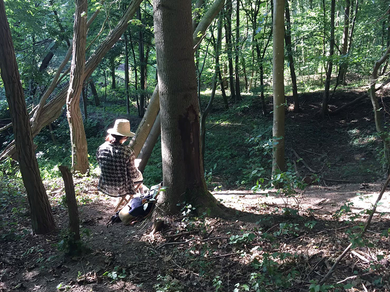 それをより体感するために対象の中に入ってみたくなり、山の中で絵を描いた。