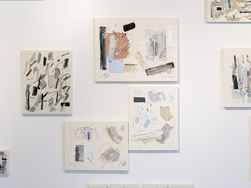 nidi galleryでは、約2年ぶり4度目となる画家・狩野岳朗の個展を開催いたします。 狩野岳朗の抽象画は、木を観察し、枝葉を描くことから始まりました。ライフワークとなっている野外での木々のスケッチで、心象を蓄え思考を巡らせています。これまで狩野は、その心の内側に蓄えた心象を取り出し、それが消えないうちに描き上げ、瞬間を形にしてきたと語ります。今回の作品群では、その閃いた瞬間に得たものを、より淡々と出し続ける「持続した意志」とも捉えられる取り組みによって描かれ、繊細ながらも揺るぎない世界が表現されています。 白、グレー、薄いブルーなどの淡く控えめな色彩の機微、絵具の質感やボリューム、陰影のリズム。個々の作品の存在感と共に、作品群全体から有機的な繋がりが感じられ、ギャラリー内には詩的で心地良い空気が広がっています。新たな表情を持った狩野岳朗の最新作を、ぜひこの機会にご堪能ください。